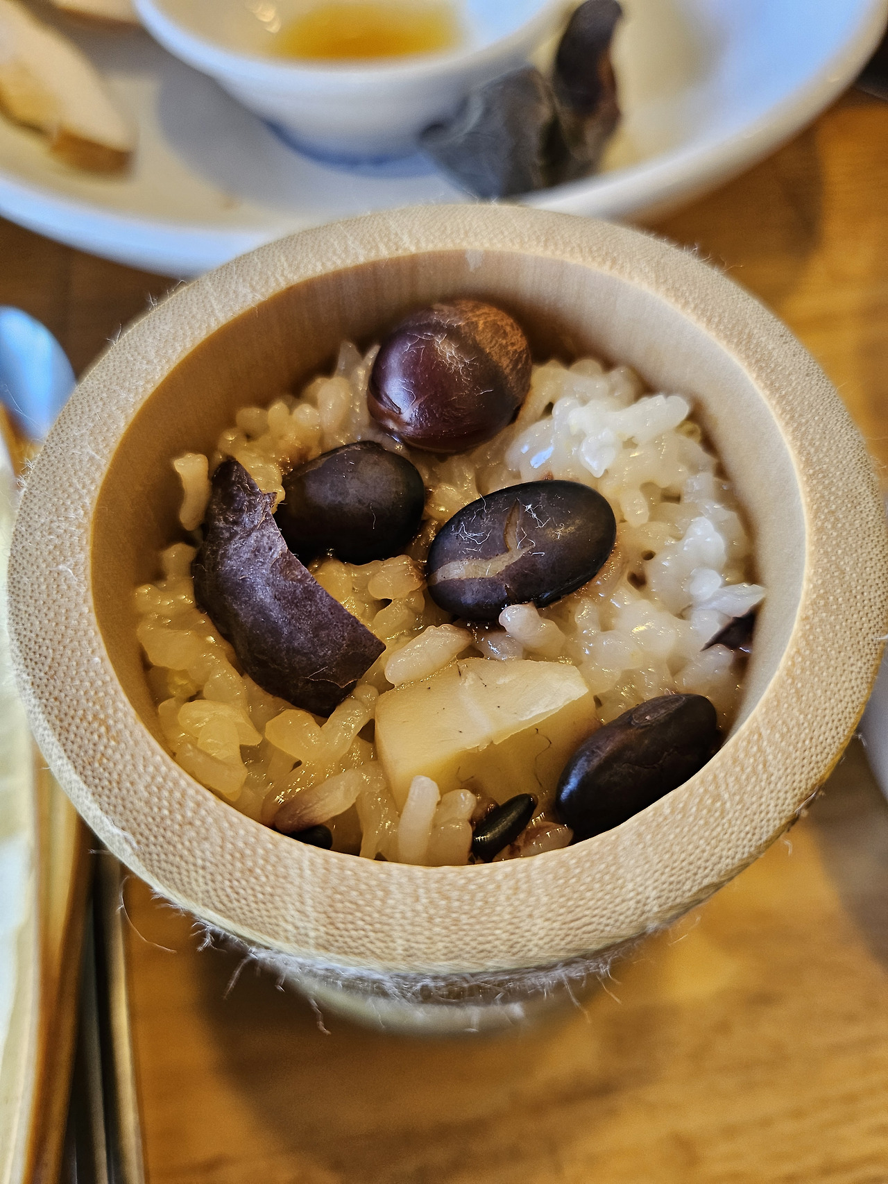 또 하나 기억에 남는 메뉴는 죽통밥이었습니다. 일반 공깃밥과는 확실히 다른 풍미가 느껴졌고, 밥 자체에서 은은한 고소함이 올라와 반찬 없이도 충분히 맛있게 먹을 수 있었습니다. 밥의 식감도 적당히 쫀득하면서 부드러워 전체 식사의 완성도를 높여주는 중요한 요소였습니다.