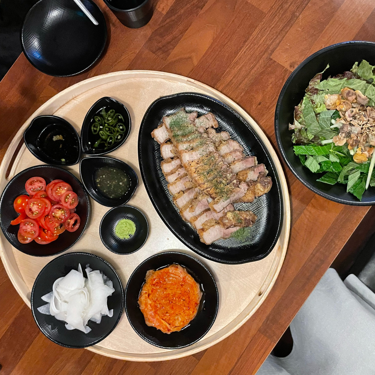 넋넋의 가장 큰 장점은 단순한 술집이 아니라는 점이다. 메뉴를 보면 일반적인 안주 수준을 넘어선 느낌이고, 실제로 주문해서 먹어보면 그 차이가 확실하게 느껴진다. 이번에 주문한 메뉴는 수육 스타일의 고기 요리였는데, 플레이팅부터 신경 쓴 흔적이 보였다. 고기는 적당한 두께로 썰려 나오며, 겉은 살짝 바삭하고 속은 촉촉하게 익어 있어서 식감이 굉장히 좋았다. 특히 기름기와 살코기의 비율이 잘 맞아서 느끼하지 않고 계속 손이 가는 맛이었다. 같이 제공되는 김치, 양파절임, 고추, 와사비 등 다양한 곁들임 메뉴들도 구성 자체가 괜찮아서 취향에 맞게 조합해서 먹는 재미가 있다. 사람들 후기를 보면 “안주가 술집 수준이 아니라 식당급이다”, “고기 메뉴 퀄리티가 생각보다 훨씬 좋다”, “다른 메뉴도 궁금해서 재방문했다”는 반응이 많은데, 실제로 먹어보니 충분히 공감이 갔다. 특히 술보다 안주를 중요하게 생각하는 사람이라면 만족도가 더 높을 것 같다. 전체적으로 가격 대비 퀄리티도 괜찮은 편이라 부담 없이 즐기기 좋고, 단순히 술 마시는 공간이 아니라 ‘먹는 재미’까지 확실히 챙길 수 있는 술집이라는 점에서 확실히 차별화된 곳이다.